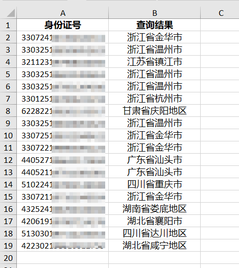 2、上傳文件支持:xlsx,xls格式, 文件內容A列為身份證號,數(shù)據(jù)必須放在第一個工作表,首行為表頭字段。請按要求放置參數(shù),避免因放置位置錯誤造成查詢不成功。