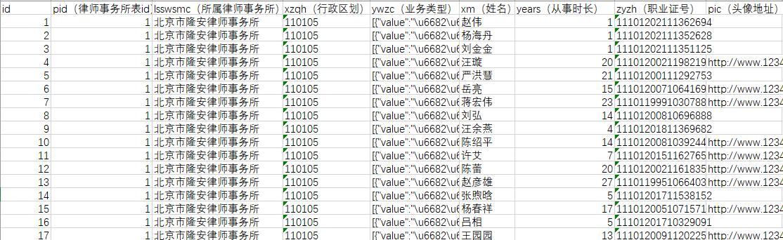 返回結果:該數據為全國律師事務所,律師基本信息,數據包含:律師事務所表id,所屬律師事務所,律所成立時間,律所名稱,律所地址,律所統一社會代碼,律所人數,律所地區,行政區劃,業務類型,姓名,從事時長,職業證號,頭像等,數據格式為SQL,XLSX,CSV