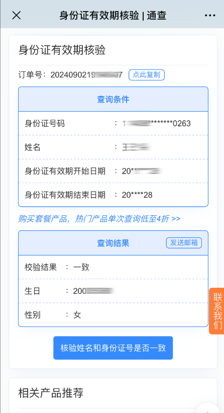 身份證有效期核驗產品是指通過輸入姓名、身份證號碼、有效期開始和結束日期,核實這些信息是否一致,從而進行身份證的實名驗證。服務特別強調,查詢結果不涉及用戶的個人隱私信息,確保合規與安全。